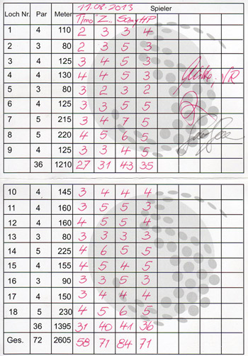 2x Eagle, 10x Birdie und 6x Par auf der Par-72-Anlage bescherten Timotheus Grall
